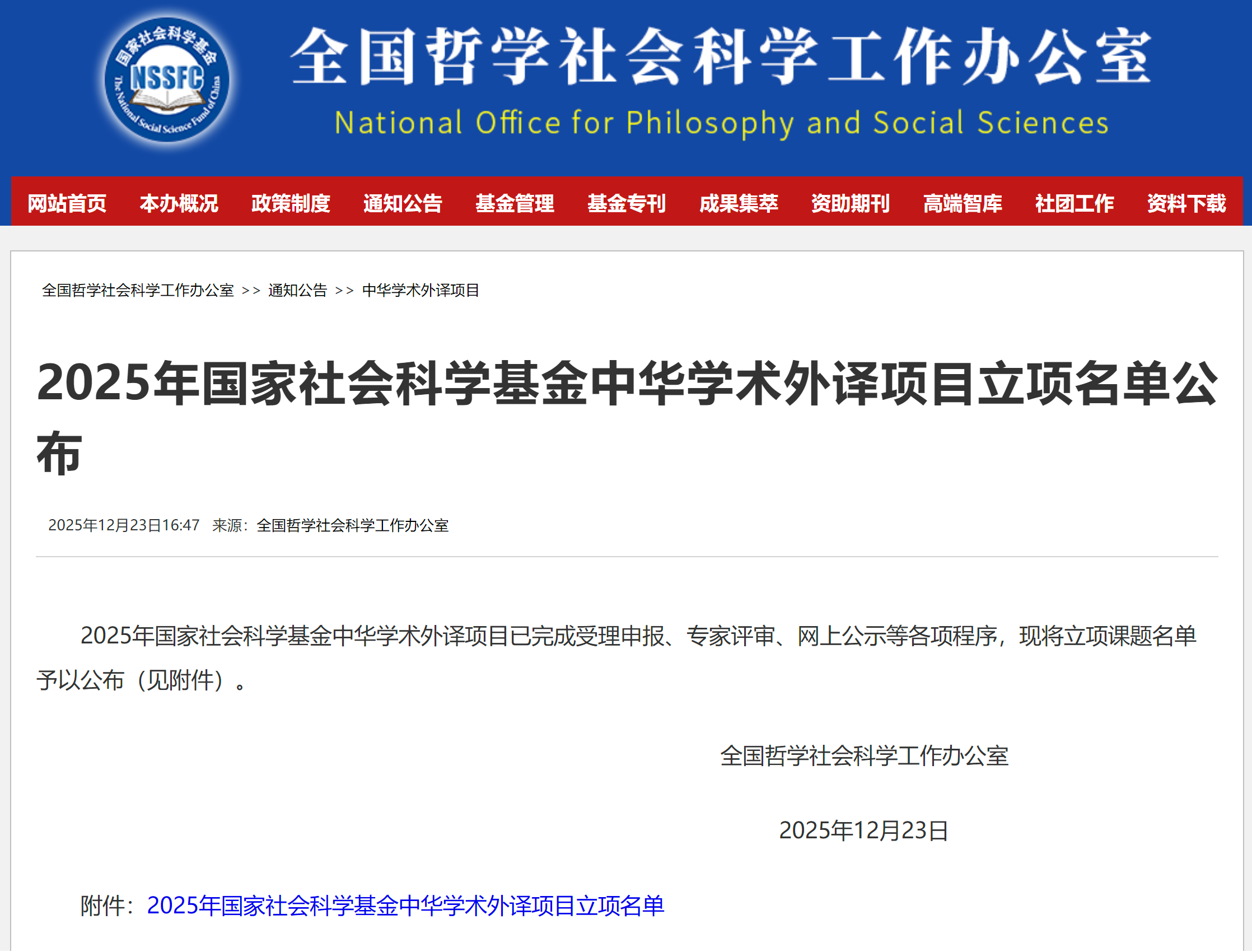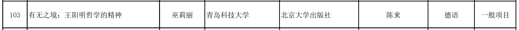 近日,国家社科基金中华学术外译项目立项名单正式公布。我校外国语学院巫莉丽副教授作为项目负责人申报的《有无之境:王阳明哲学的精神》(德文版)成功获批立项。该项目的获批,是我校在国家级高水平哲学社会科学项目建设方面取得的又一重要成果。据悉,我校是驻青省属高校中本年度唯一获批该项目的单位,标志着学校在服务国家文化战略、推动中华学术精品“走出去”方面取得新的突破。