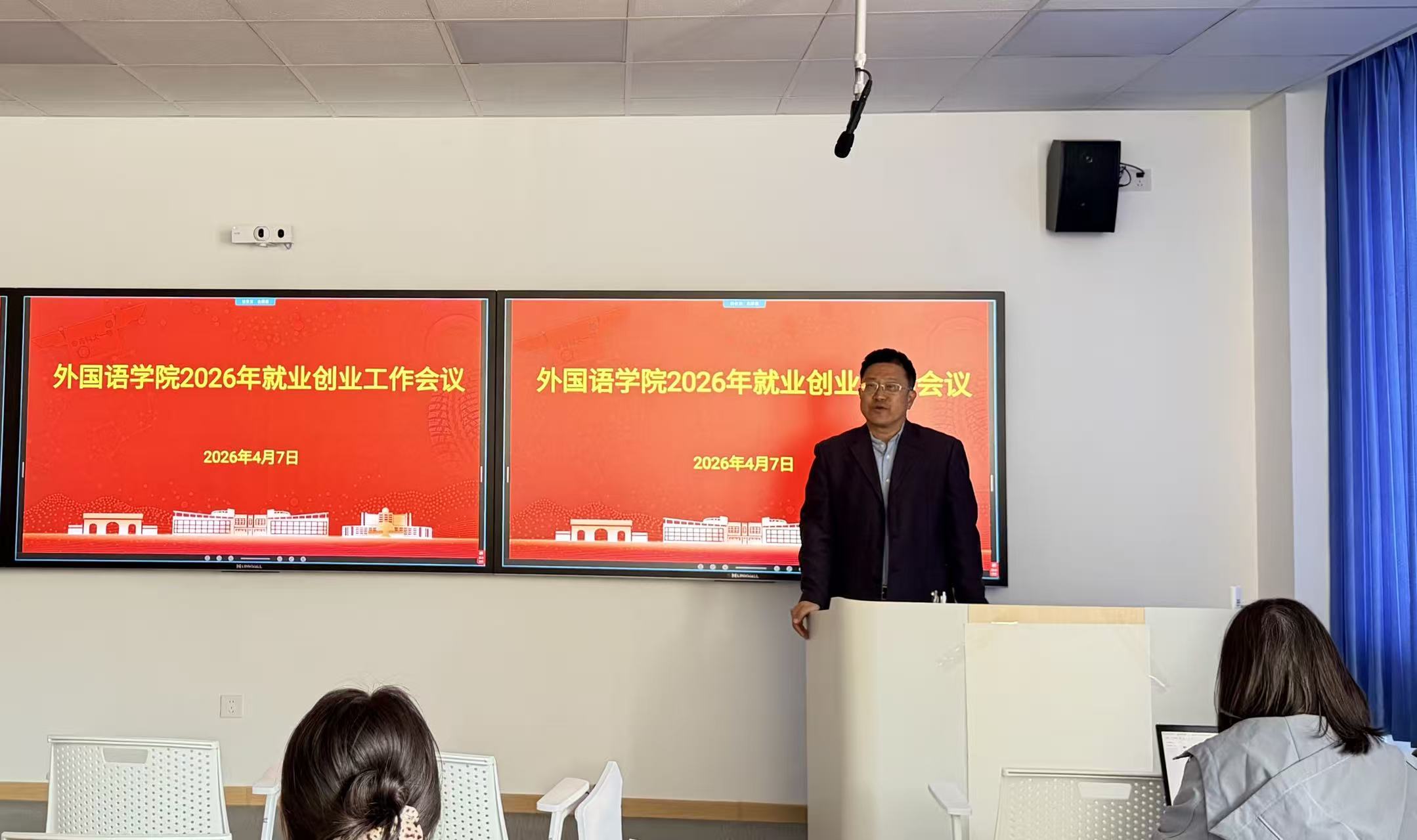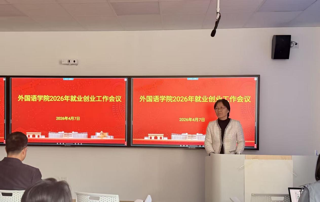 4月7日,外国语学院召开2026年就业创业工作会议。学院党委书记曲斌艳、院长王灏出席会议并讲话。会议由学院党委副书记兼副院长马寒主持。