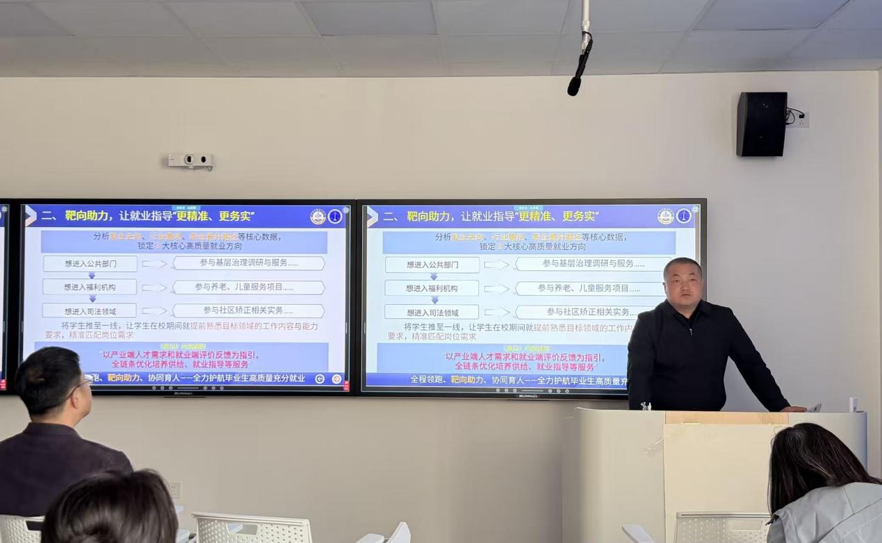 曲斌艳在讲话中强调,教育要对接社会需求、服务社会发展,就业是人才培养的重要环节,需立足人才培养体系统筹推进。要兼顾就业短期目标与学生长远发展,构建全员抓就业工作格局。全体教职工要认清形势、转变教育理念,将就业工作融入人才培养全过程,推动毕业生高质量充分就业。