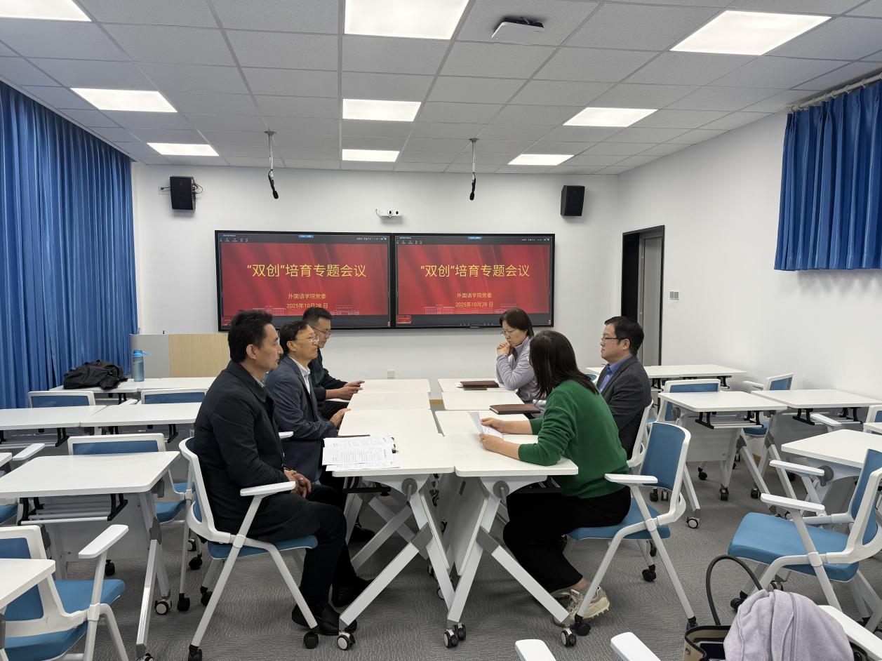 为深入推进学院“双创”工作培育,强化党建引领与业务发展深度融合,10月28日,外国语学院在学院413语音室召开“双创”培育专题会议。学院党委书记曲斌艳、党委委员及英语系党支部书记王丽出席会议,共同为学院“双创”工作及党建业务融合发展定方向、谋思路、商举措。