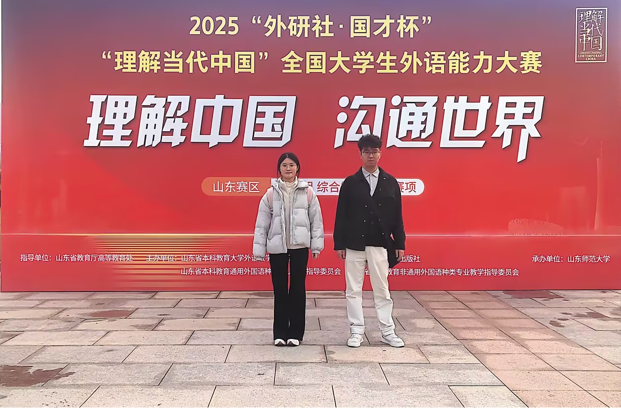 12月6日,“外研社·国才杯”“理解当代中国”全国大学生外语能力大赛口译赛项全国总决赛在北京大兴外研社大楼落下帷幕,外国语学院24级翻译硕士徐佳昊同学凭借其卓越的双语转换能力与深厚的跨文化沟通素养,从全国顶尖选手中脱颖而出,冲进国赛50强,勇夺国赛银奖。另外,综合能力赛项英语234班武采辰同学荣获国赛铜奖。