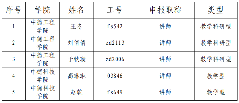 另:因中德科技学院和中德工程学院无职称评审权,故委托我院对其学院教师进行职称评定,具体情况如下: