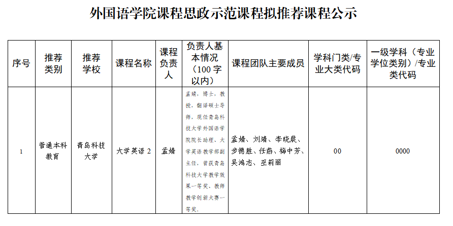 根据《关于开展2025年度校级课程思政示范课程建设暨山东省课程思政示范课程推荐工作的通知》要求,经课程负责人申报、专家评审,现将外国语学院课程思政示范课程拟推荐课程进行公示。公示时间为11月11日至11月12日上午9时,如有异议,请实名反映。