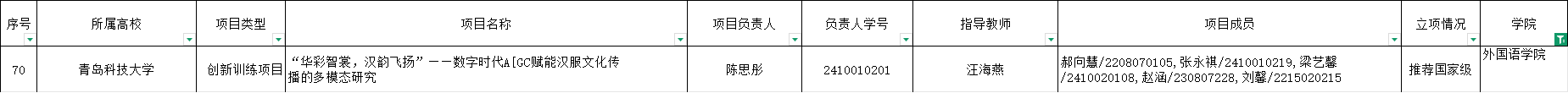 根据《山东省教育厅关于组织开展2025年国家级、省级大学生创新训练计划立项申报和项目结题工作的通知》有关要求,山东省教育厅组织开展了省级大学生创新训练计划项目申报工作。经高校推荐、专家评审等程序,我院获推荐国家级1项,现将2025年大学生创新训练计划项目拟立项名单予以公示。