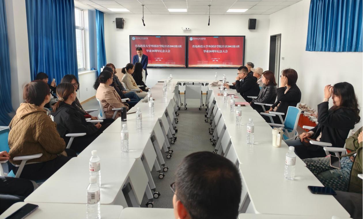 11月2日,外国语学院日语2002级1班毕业20周年纪念大会在学院413会议室隆重举行。学院党委书记曲斌艳、日语系主任班健、团委书记王玉凯、教师代表与日语021班校友欢聚一堂,共叙师生情谊,共话未来发展。